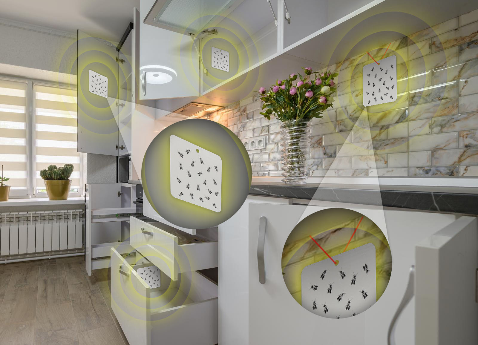 Lep na mole No Pest® eliminuje mole spożywcze poprzez ich odławianie w pomieszczeniach takich jak kuchnie, spiżarnie i magazyny oraz bezpośrednio w szafach z produktami spożywczymi.